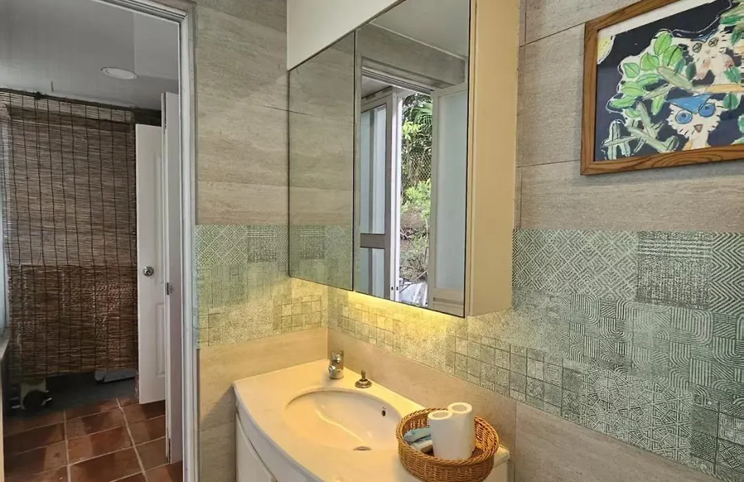 The apartment provides guests with the convenience of self-catering amenities, like a kitchen and an outdoor dining area for their enjoyment. Guests can also take a bus at On Po Village bus station, set only a 5-minute walk away, to explore the rest of Hong Kong. The property opens onto a patio.